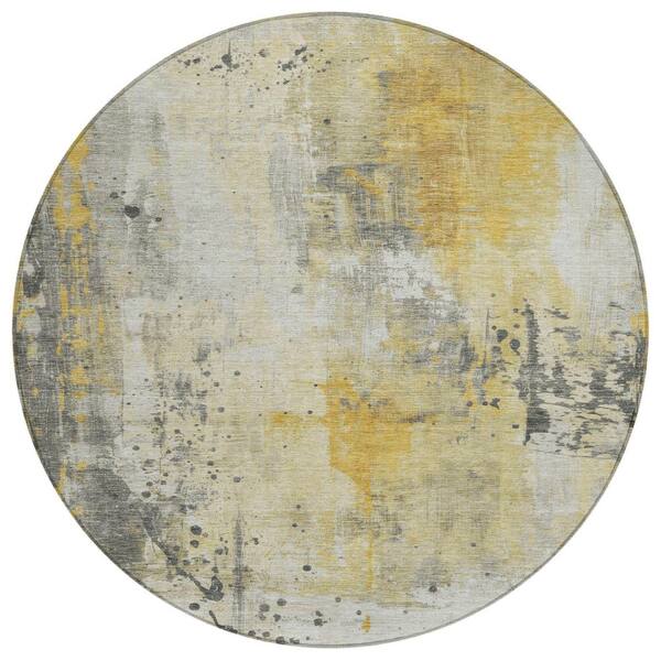 Chantille Machine Washable Indoor/Outdoor Abstract ACN1840 Gold 8 ft. x 8 ft. Round Rug