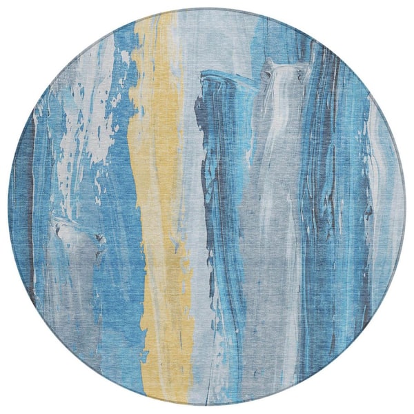 Chantille Machine Washable Indoor/Outdoor Abstract ACN1845 Blue 8 ft. x 8 ft. Round Rug