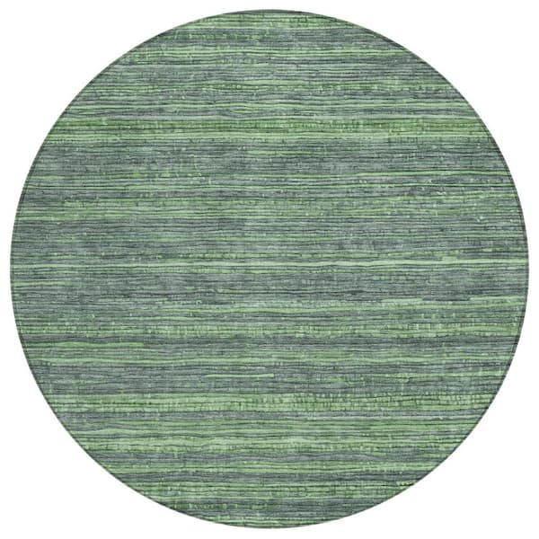 Chantille Machine Washable Indoor/Outdoor Abstract ACN1846 Green 8 ft. x 8 ft. Round Rug