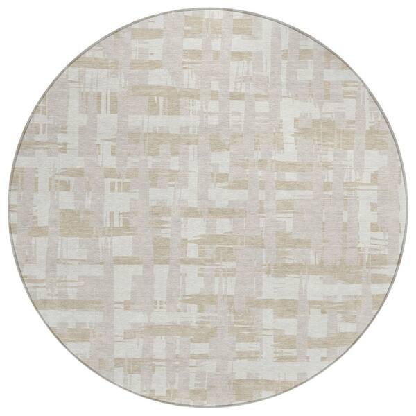 Chantille Machine Washable Indoor/Outdoor Abstract ACN1849 Ivory 8 ft. x 8 ft. Round Rug