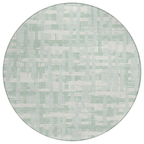 Chantille Machine Washable Indoor/Outdoor Abstract ACN1849 Mint 8 ft. x 8 ft. Round Rug