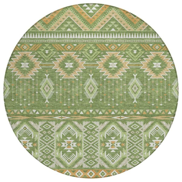 Chantille Machine Washable Indoor/Outdoor Abstract ACN1851 Green 8 ft. x 8 ft. Round Rug