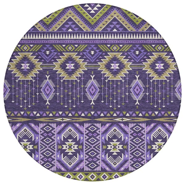 Chantille Machine Washable Indoor/Outdoor Abstract ACN1851 Purple 8 ft. x 8 ft. Round Rug