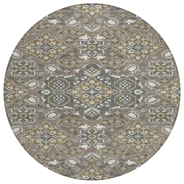 Chantille Machine Washable Indoor/Outdoor Abstract ACN1853 Mocha 8 ft. x 8 ft. Round Rug