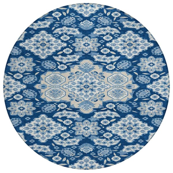 Chantille Machine Washable Indoor/Outdoor Abstract ACN1853 Navy 8 ft. x 8 ft. Round Rug