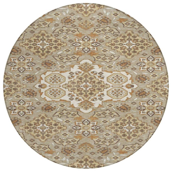 Chantille Machine Washable Indoor/Outdoor Abstract ACN1853 Taupe 8 ft. x 8 ft. Round Rug