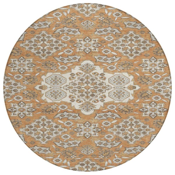 Chantille Machine Washable Indoor/Outdoor Abstract ACN1853 Terracotta 8 ft. x 8 ft. Round Rug