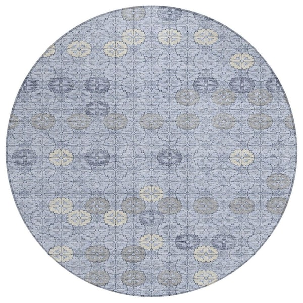 Chantille Machine Washable Indoor/Outdoor Abstract ACN1855 Blue 8 ft. x 8 ft. Round Rug