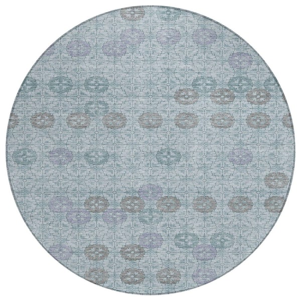Chantille Machine Washable Indoor/Outdoor Abstract ACN1855 Teal 8 ft. x 8 ft. Round Rug