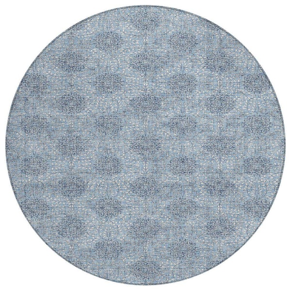 Chantille Machine Washable Indoor/Outdoor Abstract ACN1856 Blue 8 ft. x 8 ft. Round Rug