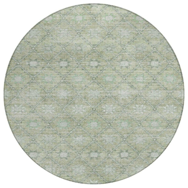 Chantille Machine Washable Indoor/Outdoor Abstract ACN1858 Aloe 8 ft. x 8 ft. Round Rug