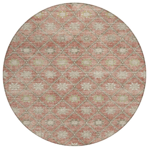 Chantille Machine Washable Indoor/Outdoor Abstract ACN1858 Terracotta 8 ft. x 8 ft. Round Rug