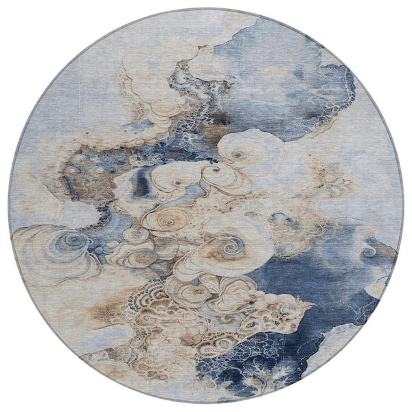 Chantille Machine Washable Indoor/Outdoor Abstract ACN1860 Denim 8 ft. x 8 ft. Round Rug