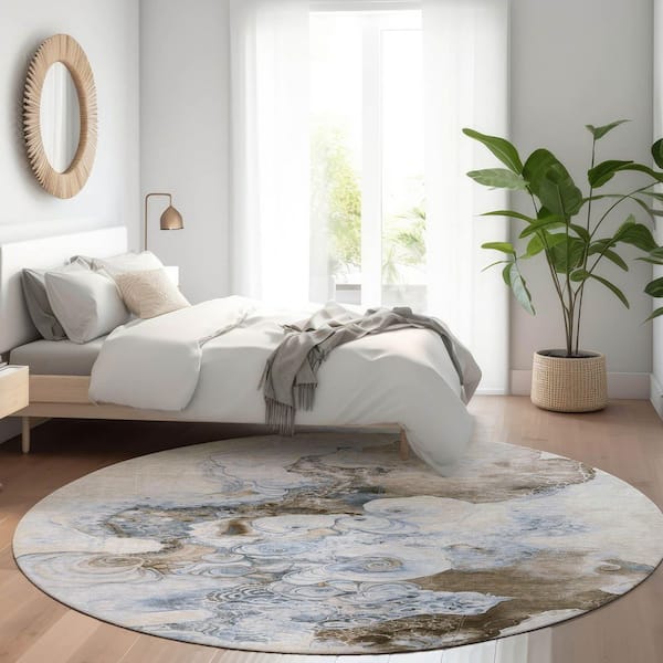 Chantille Machine Washable Indoor/Outdoor Abstract ACN1860 Taupe 8 ft. x 8 ft. Round Rug