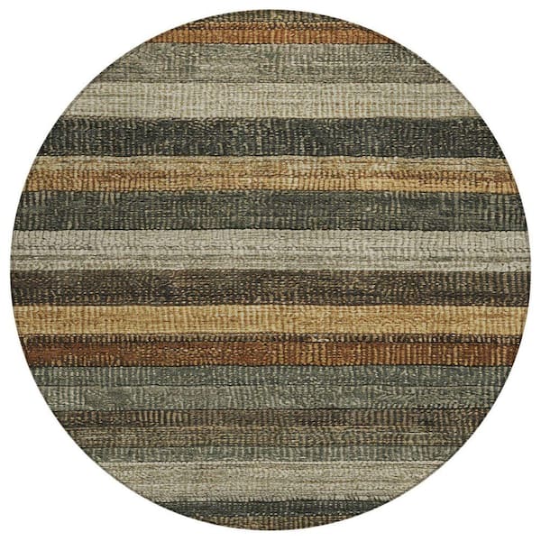 Chantille Machine Washable Indoor/Outdoor Abstract ACN1865 Khaki 8 ft. x 8 ft. Round Rug