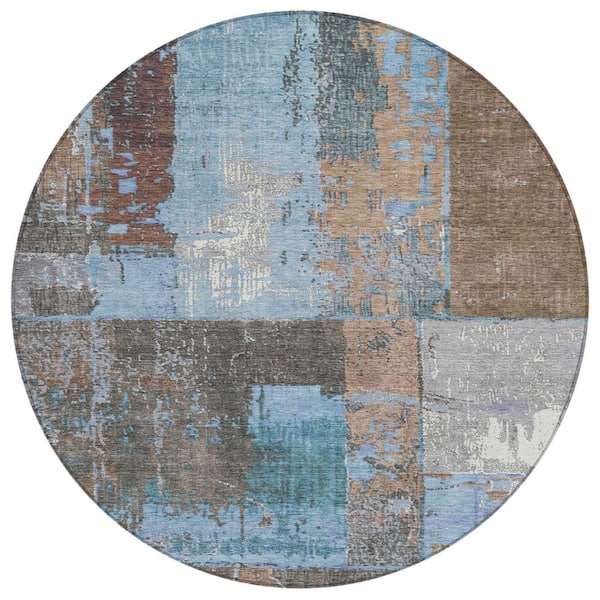Chantille Machine Washable Indoor/Outdoor Abstract ACN1866 Taupe 8 ft. x 8 ft. Round Rug