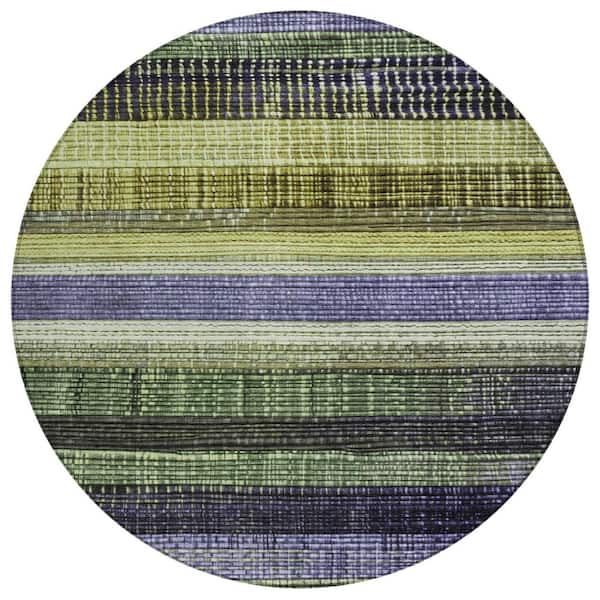 Chantille Machine Washable Indoor/Outdoor Abstract ACN1873 Aloe 8 ft. x 8 ft. Round Rug