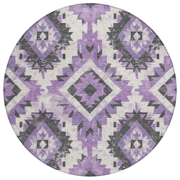 Chantille Machine Washable Indoor/Outdoor Abstract ACN1878 Purple 8 ft. x 8 ft. Round Rug