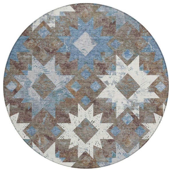 Chantille Machine Washable Indoor/Outdoor Abstract ACN1879 Brown 8 ft. x 8 ft. Round Rug