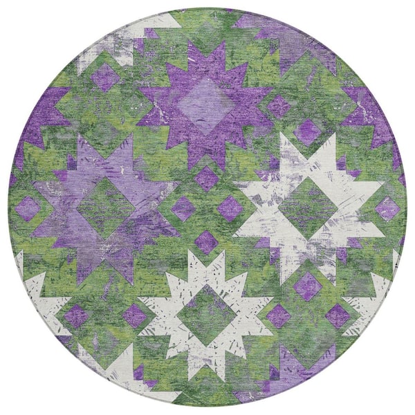 Chantille Machine Washable Indoor/Outdoor Abstract ACN1879 Green 8 ft. x 8 ft. Round Rug