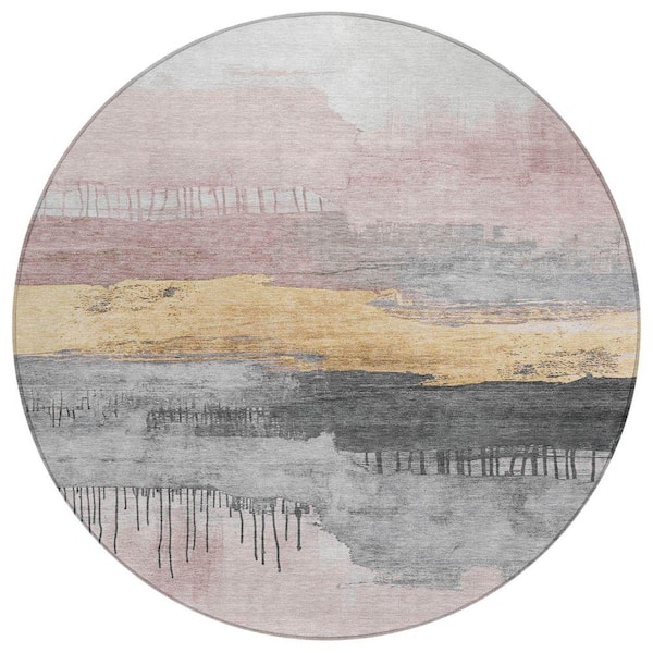 Chantille Machine Washable Indoor/Outdoor Abstract ACN1880 Blush 8 ft. x 8 ft. Round Rug