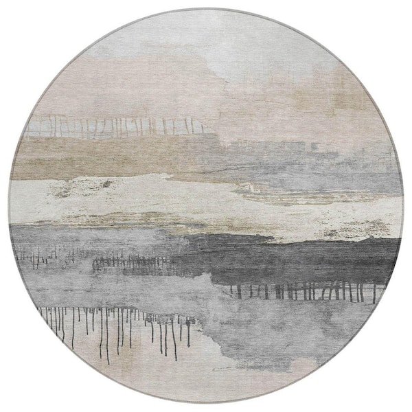 Chantille Machine Washable Indoor/Outdoor Abstract ACN1880 Ivory 8 ft. x 8 ft. Round Rug