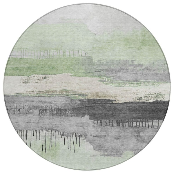 Chantille Machine Washable Indoor/Outdoor Abstract ACN1880 Mint 8 ft. x 8 ft. Round Rug