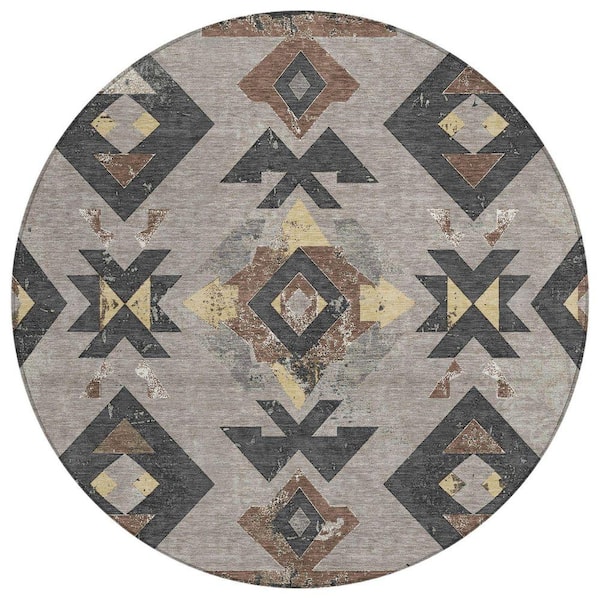 Chantille Machine Washable Indoor/Outdoor Abstract ACN1882 Taupe 8 ft. x 8 ft. Round Rug