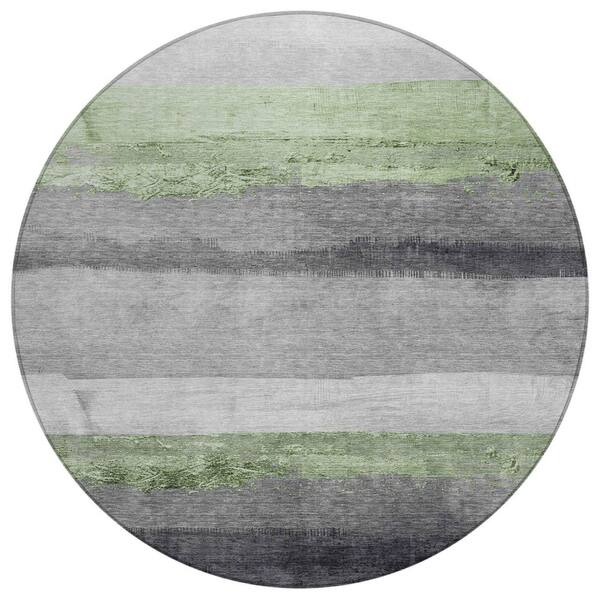 Chantille Machine Washable Indoor/Outdoor Abstract ACN1883 Aloe 8 ft. x 8 ft. Round Rug