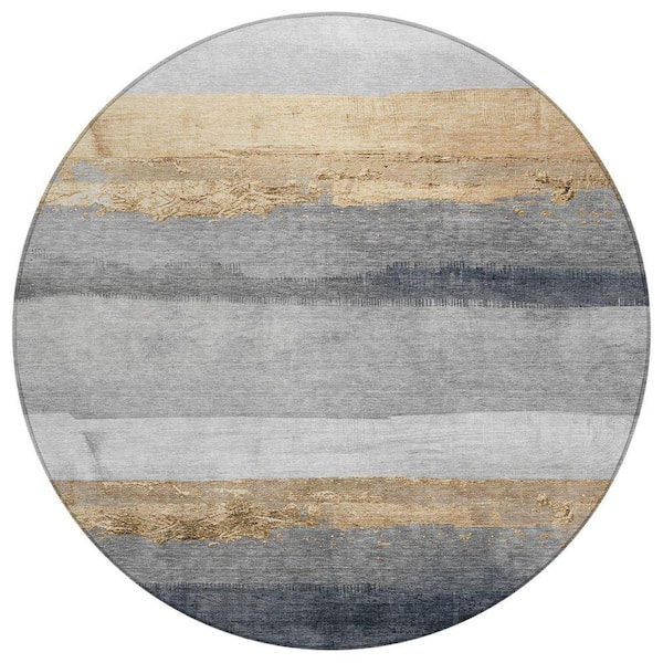 Chantille Machine Washable Indoor/Outdoor Abstract ACN1883 Gold 8 ft. x 8 ft. Round Rug
