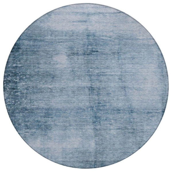 Chantille Machine Washable Indoor/Outdoor Abstract ACN1884 Denim 8 ft. x 8 ft. Round Rug