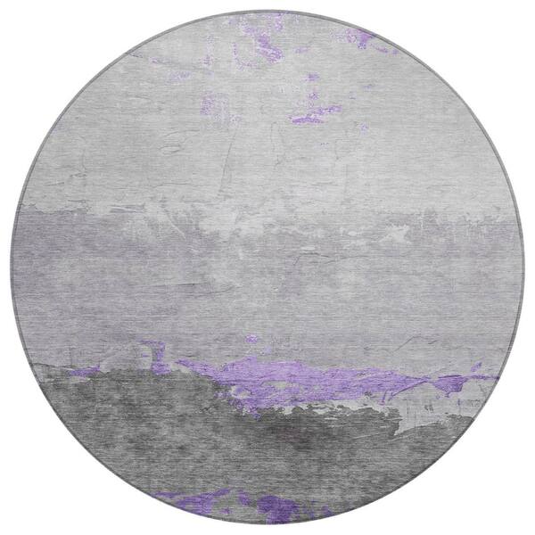 Chantille Machine Washable Indoor/Outdoor Abstract ACN1885 Purple 8 ft. x 8 ft. Round Rug