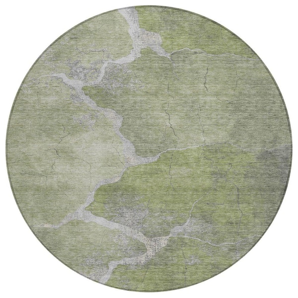Chantille Machine Washable Indoor/Outdoor Abstract ACN1889 Green 8 ft. x 8 ft. Round Rug