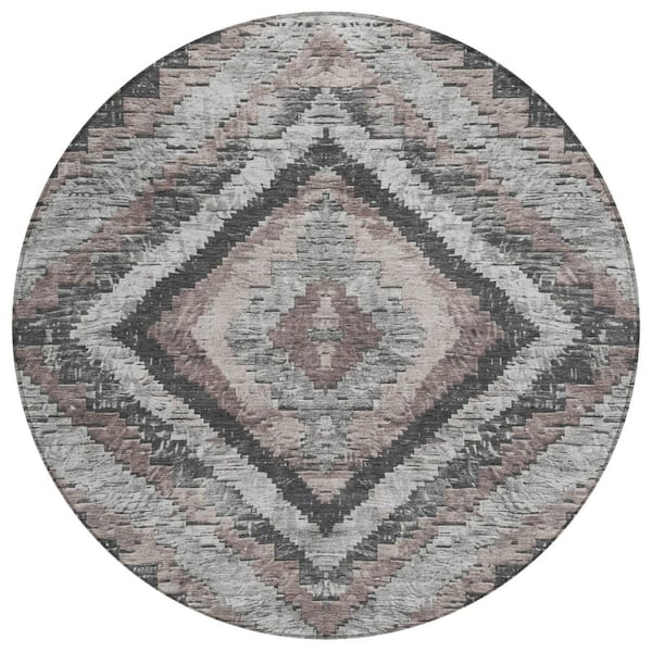 Chantille Machine Washable Indoor/Outdoor Abstract ACN1890 Taupe 8 ft. x 8 ft. Round Rug