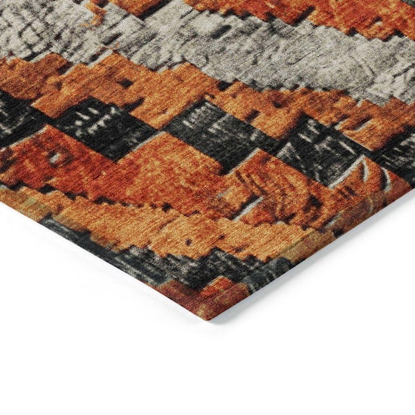 Chantille Machine Washable Indoor/Outdoor Abstract ACN1890 Terracotta 8 ft. x 8 ft. Round Rug