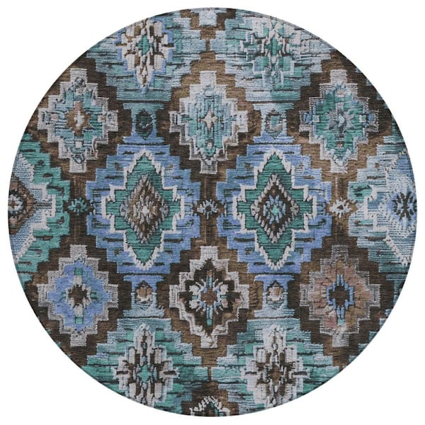 Chantille Machine Washable Indoor/Outdoor Abstract ACN1891 Brown 8 ft. x 8 ft. Round Rug