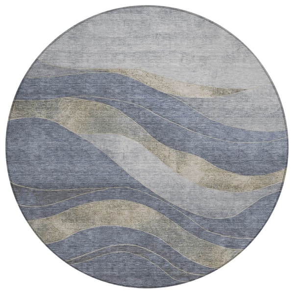 Chantille Machine Washable Indoor/Outdoor Abstract ACN1892 Denim 8 ft. x 8 ft. Round Rug