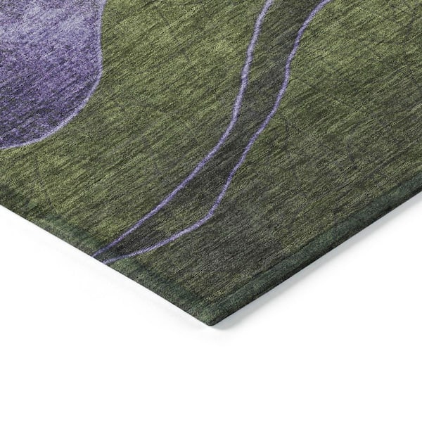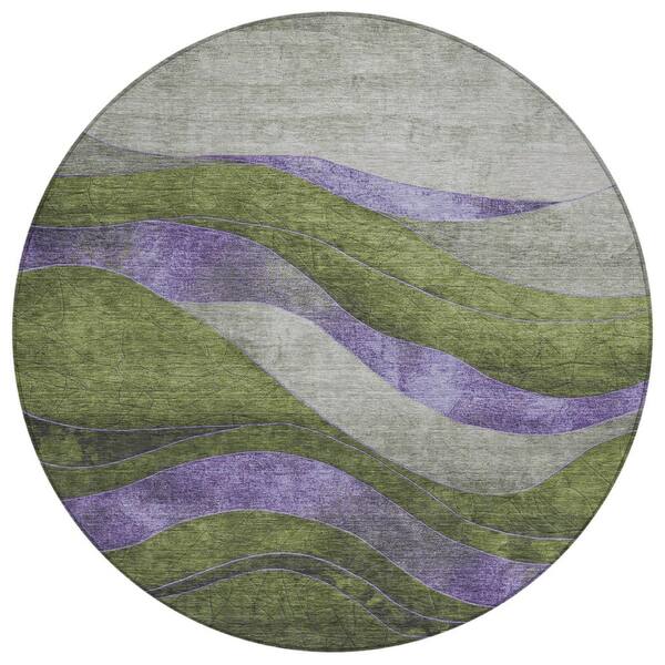 Chantille Machine Washable Indoor/Outdoor Abstract ACN1892 Olive 8 ft. x 8 ft. Round Rug
