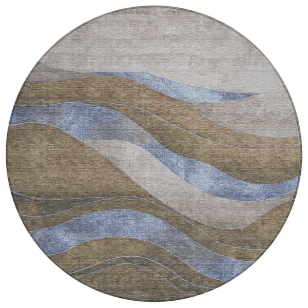 Chantille Machine Washable Indoor/Outdoor Abstract ACN1892 Taupe 8 ft. x 8 ft. Round Rug