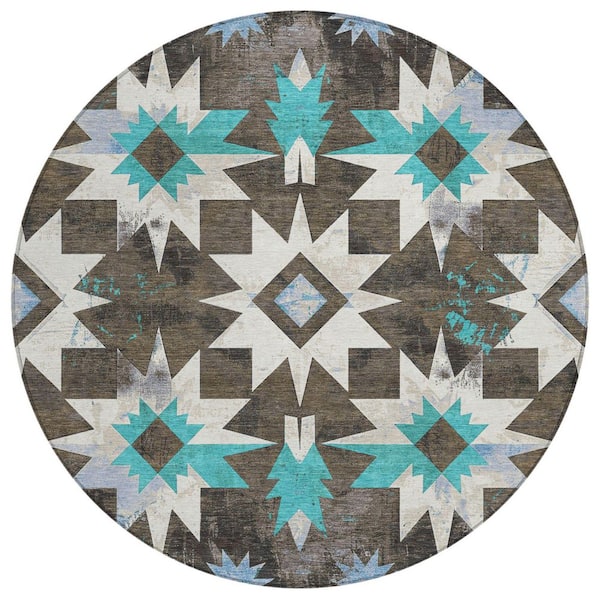 Chantille Machine Washable Indoor/Outdoor Abstract ACN1893 Brown 8 ft. x 8 ft. Round Rug