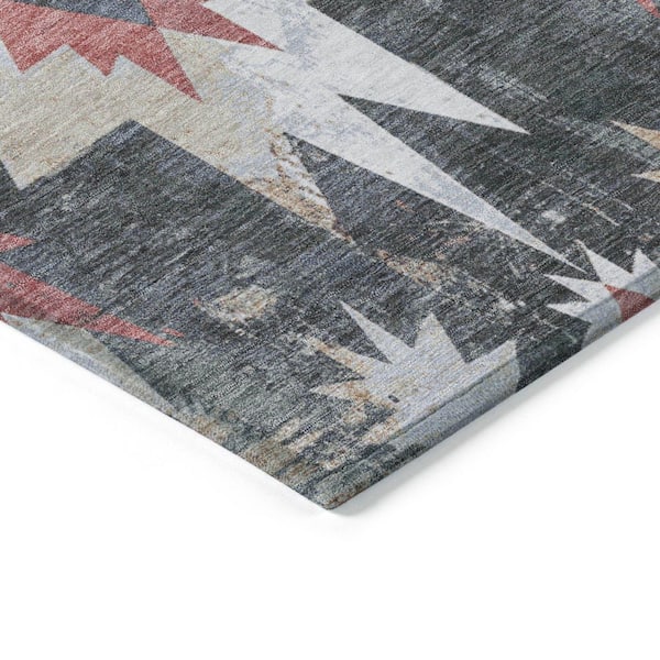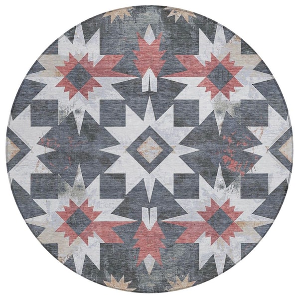 Chantille Machine Washable Indoor/Outdoor Abstract ACN1893 Charcoal 8 ft. x 8 ft. Round Rug