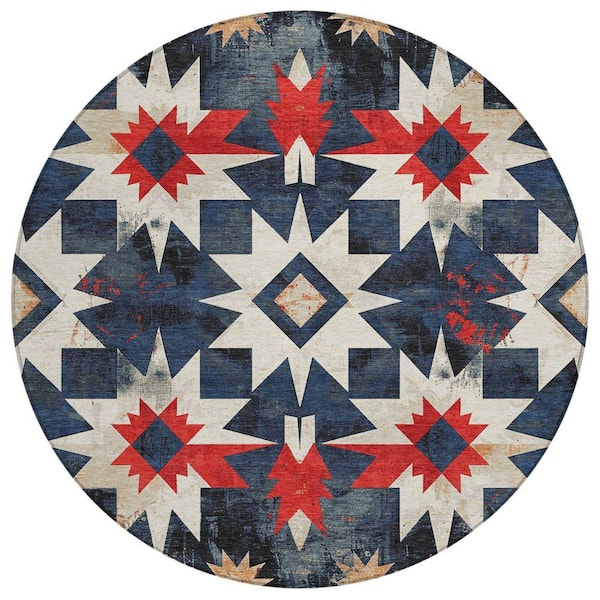 Chantille Machine Washable Indoor/Outdoor Abstract ACN1893 Navy 8 ft. x 8 ft. Round Rug