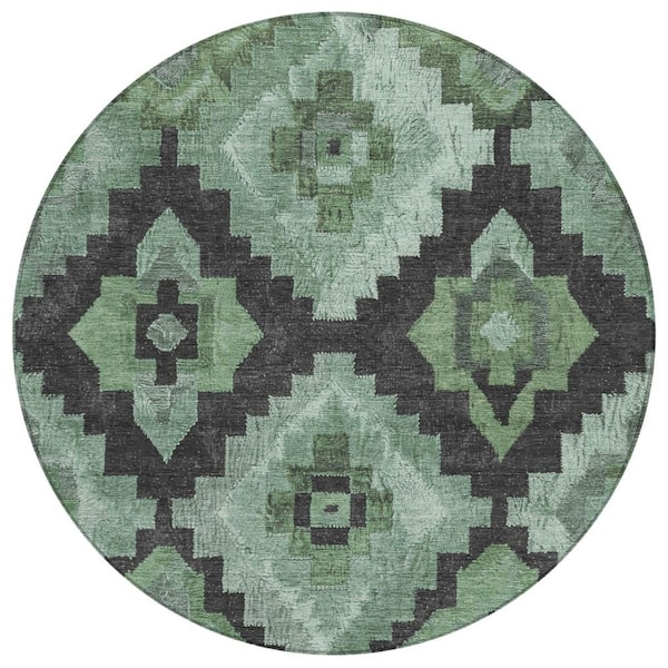 Chantille Machine Washable Indoor/Outdoor Abstract ACN1894 Green 8 ft. x 8 ft. Round Rug