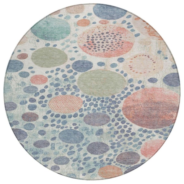 Chantille Machine Washable Indoor/Outdoor Abstract ACN1895 Denim 8 ft. x 8 ft. Round Rug