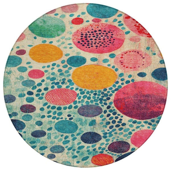 Chantille Machine Washable Indoor/Outdoor Abstract ACN1895 Teal 8 ft. x 8 ft. Round Rug