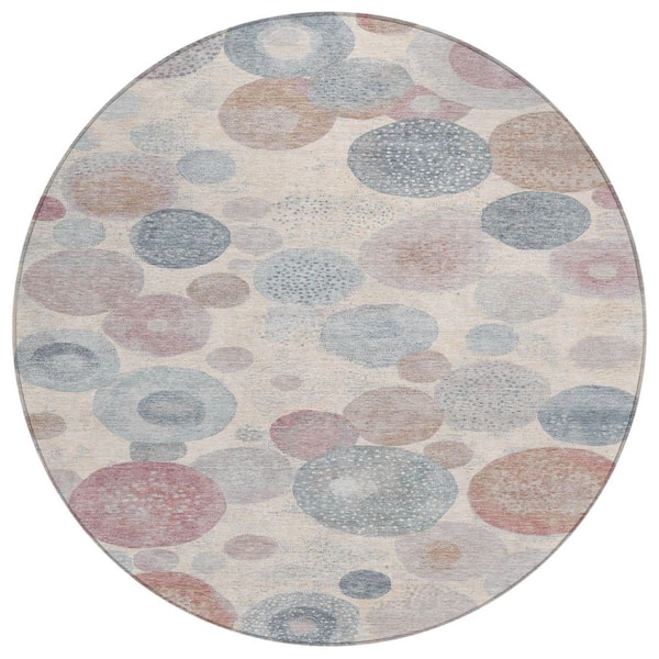 Chantille Machine Washable Indoor/Outdoor Abstract ACN1896 Peach 8 ft. x 8 ft. Round Rug