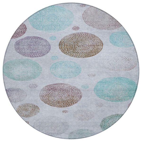 Chantille Machine Washable Indoor/Outdoor Abstract ACN1897 Blue 8 ft. x 8 ft. Round Rug