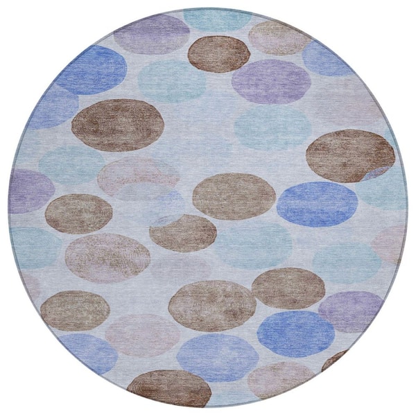 Chantille Machine Washable Indoor/Outdoor Abstract ACN1898 Sky 8 ft. x 8 ft. Round Rug