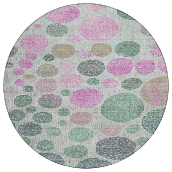 Chantille Machine Washable Indoor/Outdoor Abstract ACN1899 Sage 8 ft. x 8 ft. Round Rug