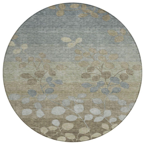 Chantille Machine Washable Indoor/Outdoor Abstract ACN1900 Khaki 8 ft. x 8 ft. Round Rug